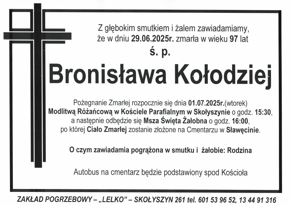 01.07.2025 r. ś.p. Bronisława Kołodziej