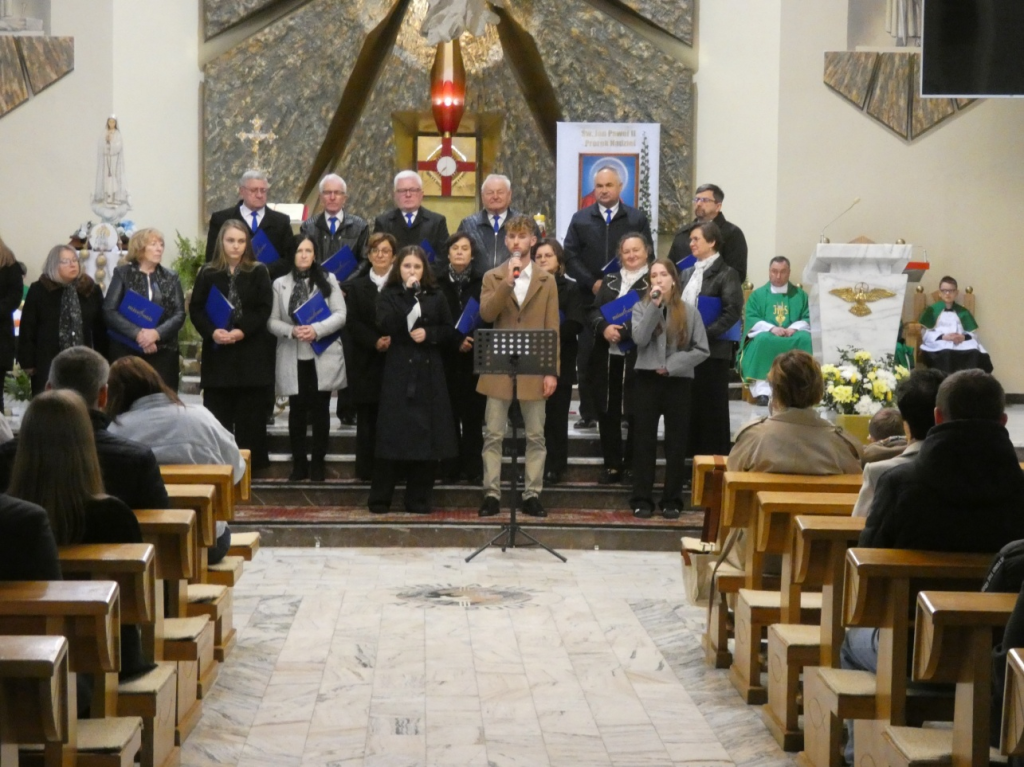 W niedzielę 12 października 2025 r. obchodziliśmy XXV Dzień Papieski, Hasłem tegorocznego Dnia Papieskiego stały się słowa ,,Św. Jan Paweł II. Prorok Nadziei”. Z tej okazji w niedzielę 12 października zamiast kazania uczniowie klasy IV, V, VII i VIII naszej szkoły wraz z chórem zaprezentowali montaż słowno – muzyczny który przypomniał sylwetkę i nauczanie św. Jana Pawła II o nadziei.